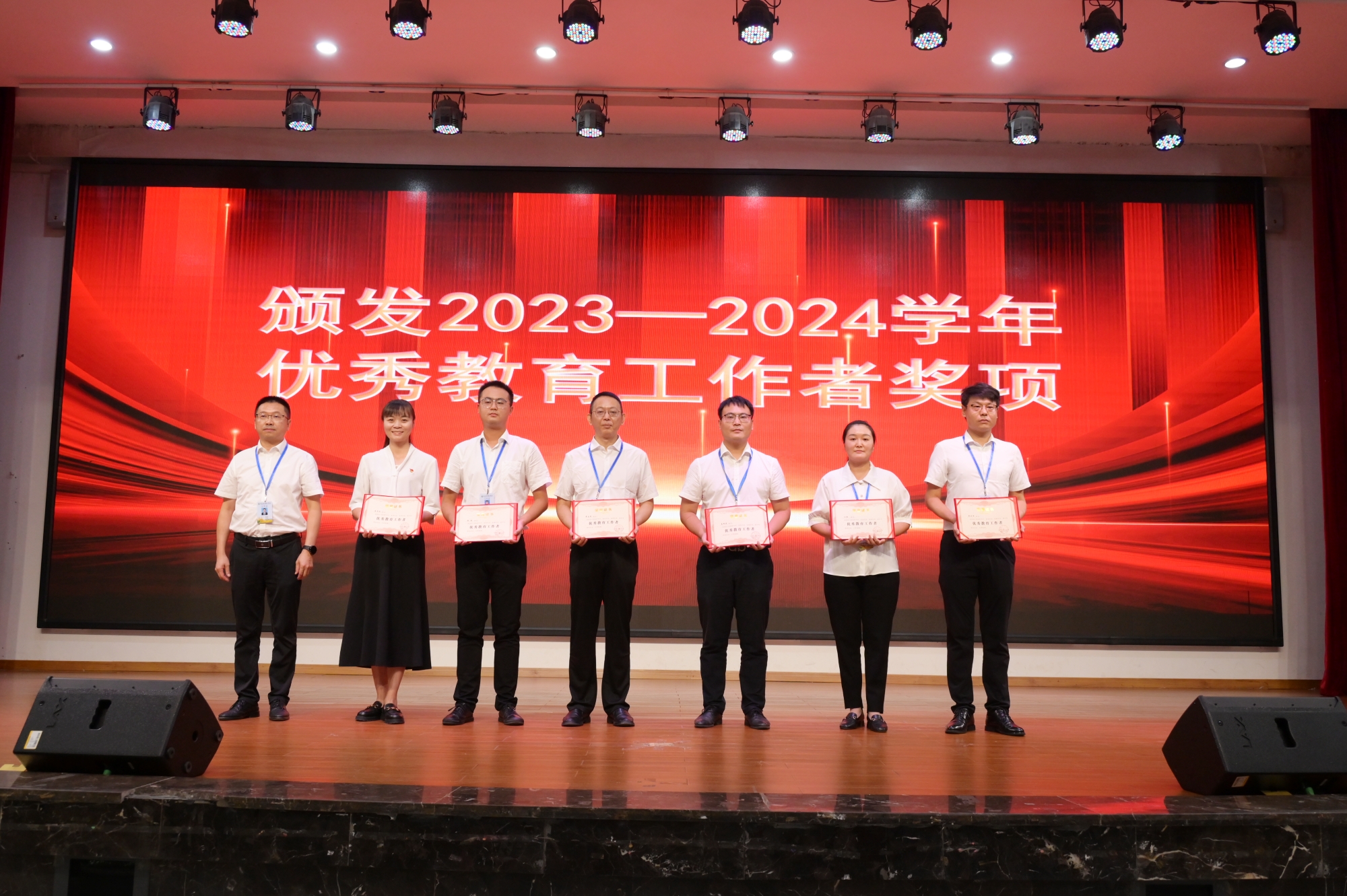 会上,全体人员一同观看了学校成果展,对在教学、科研、管理等方面取得突出成绩的18名优秀教师和13名优秀教育工作者进行了表彰。