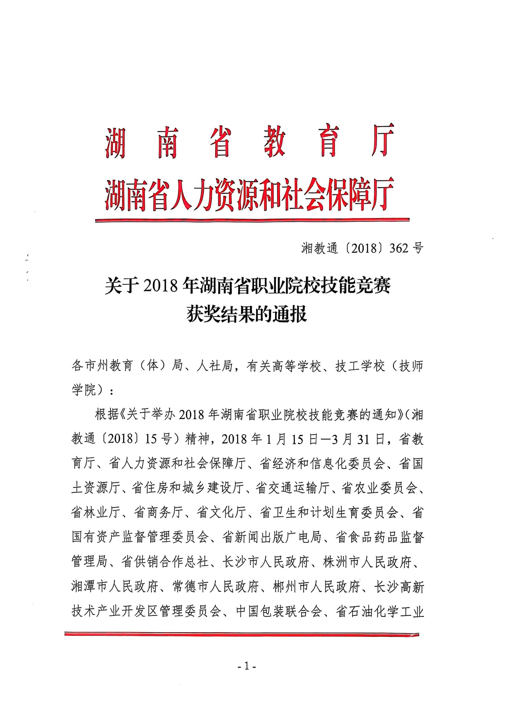 湖南省职业院校技能竞赛优秀组织奖