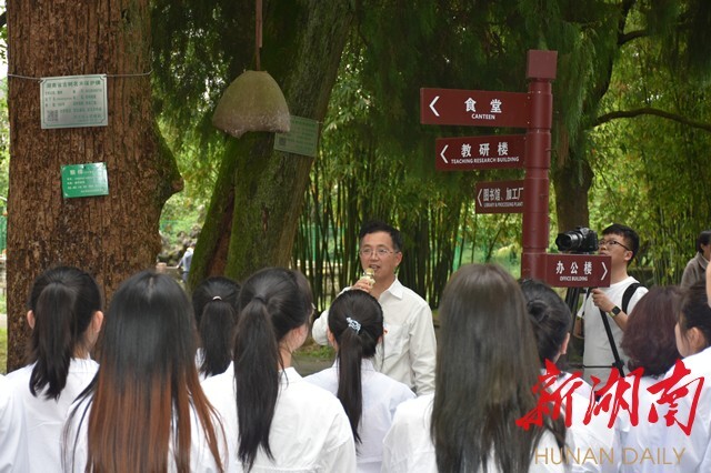 “这句话是袁老师所写,是他的初心理想,也是他的毕生追求。”校训牌前,胡佳武向学生们深情讲述袁隆平院士在此37年的奋斗历程。