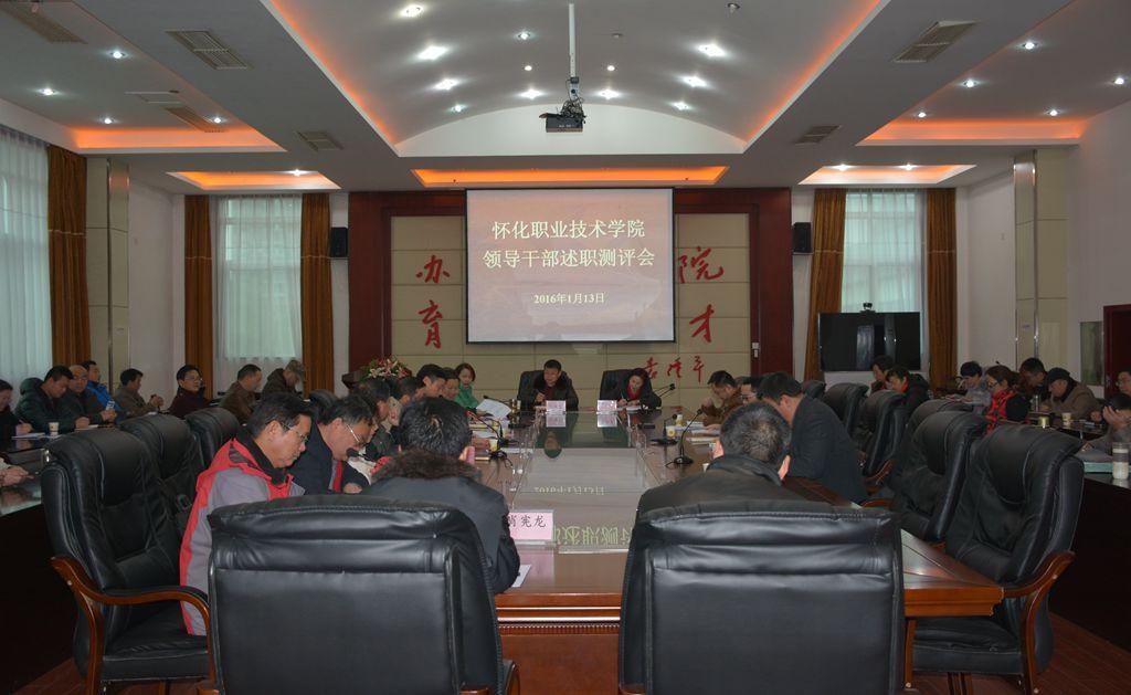 1月13日上午,我院在多功能厅召开了领导干部述职测评会,怀化市市委组织部的办公室主任石伟等四位领导出席本次测评会,我院全体领导班子成员及各处室、系部负责人参加会议。会议由我院党委副书记邬国盛主持。