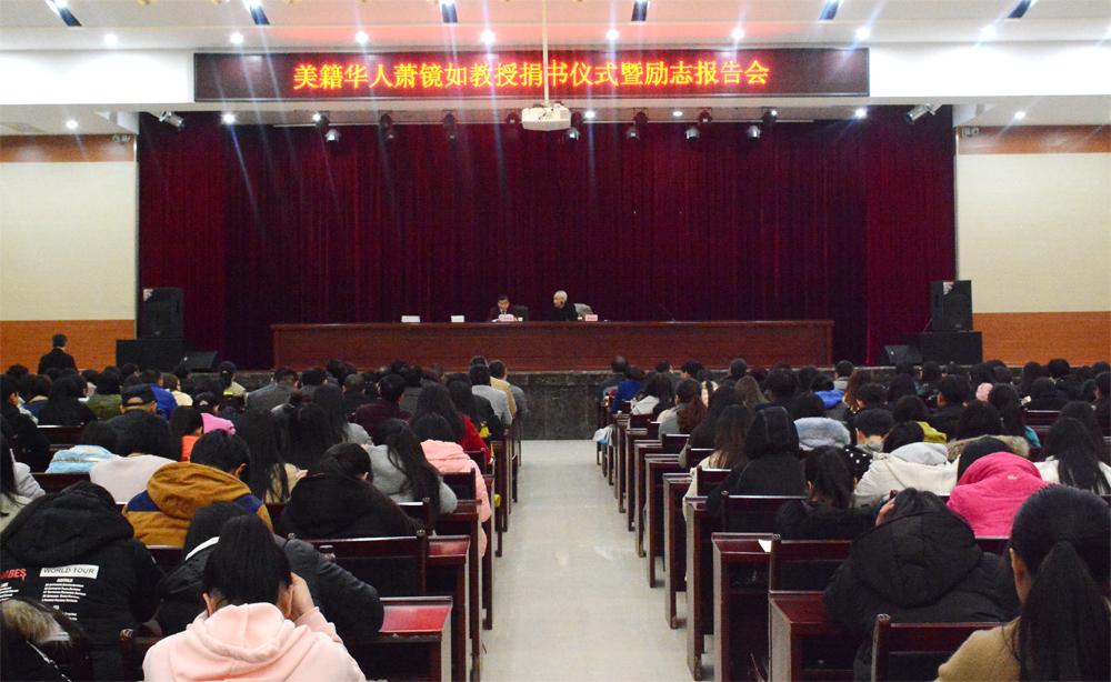 3月21日,美籍华人、著名经济学博士萧镜如冒着丝丝小雨来到怀化职业技术学院,在怀化职院举行了《飞翔的心》赠书仪式及励志报告会。学院党委书记胡佳武、院长王聪田进行了热情迎接,并出席报告会,报告会由学院党委副书记邬国盛主持,近四百名教师学生代表参加。